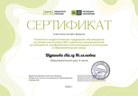 Шуриновой Айслу Ислямовны